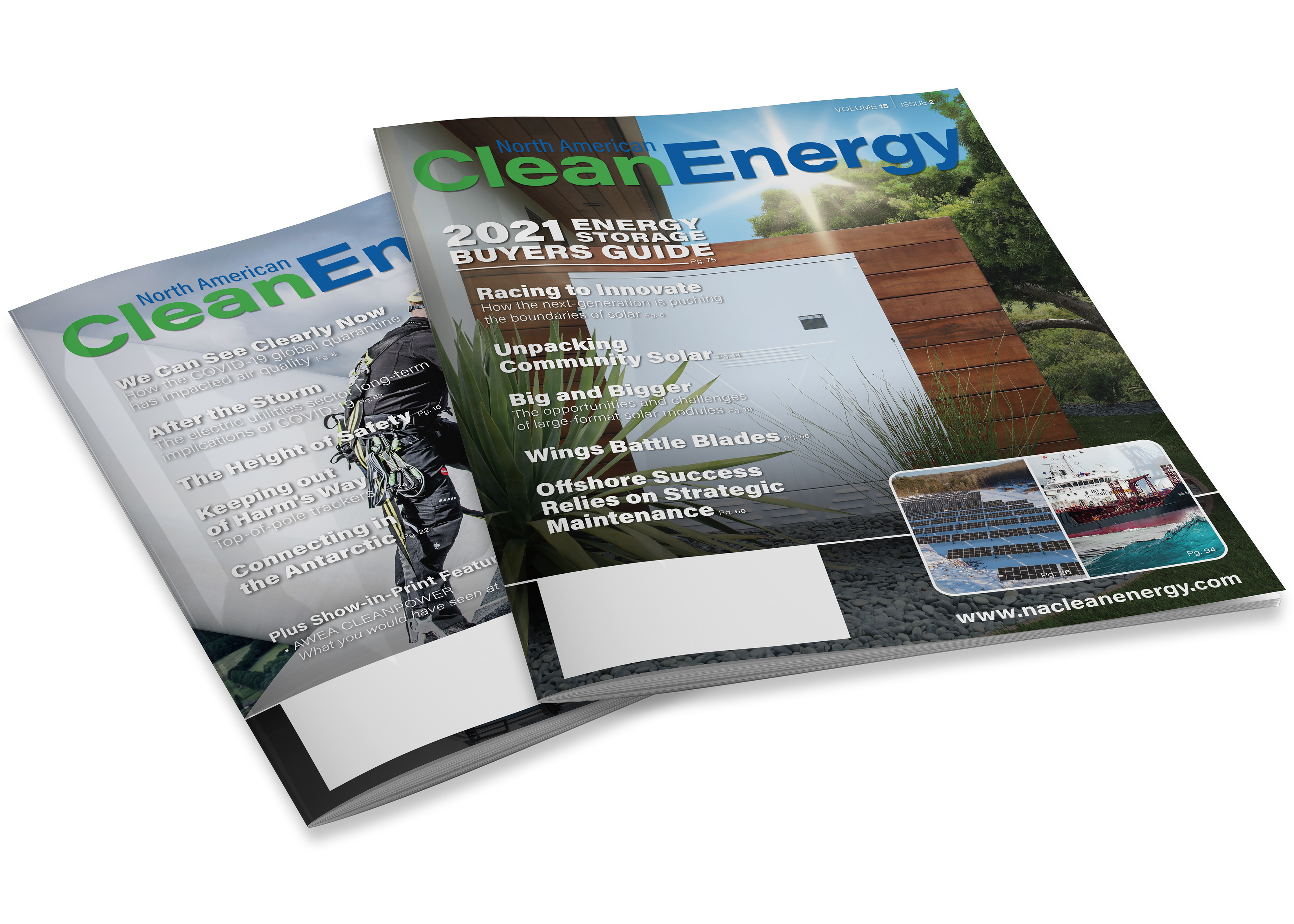 Sample selection of various magazine issues from over the last several years. More issues can be viewed at www.nacleanenergy.com or through Issuu.com. (10.75" x 13.25" page size)